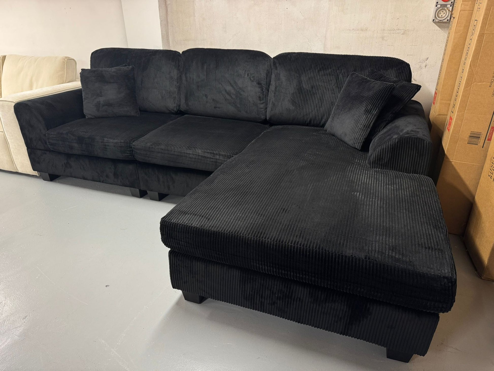 Meet the sofa that fits your room perfectly. This brand new L-shape beauty features a reversible chaise that can go on the left or right side. Available in Grey, Black, or Cream — because your living room deserves flexibility and style.