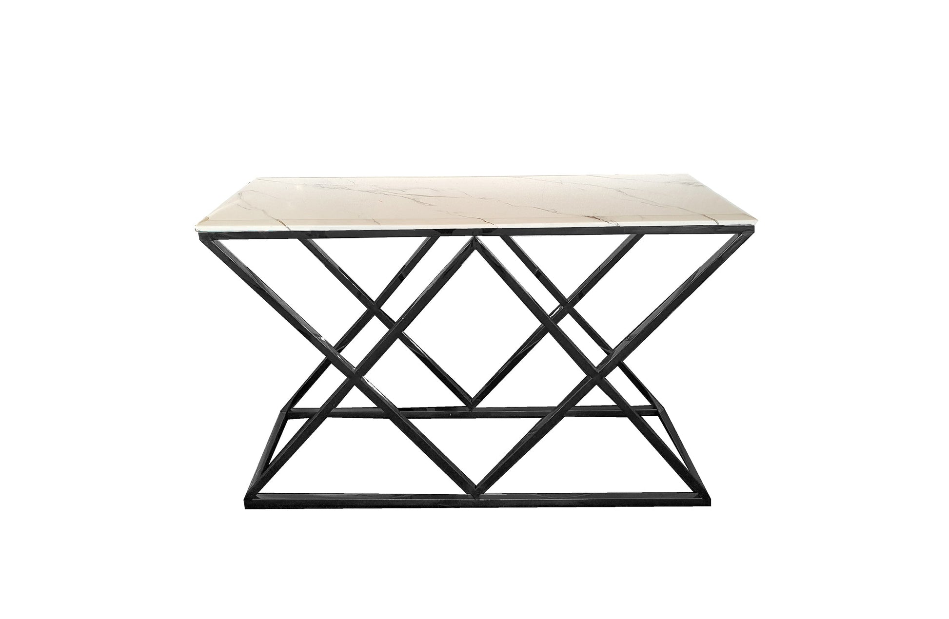 Sleek Design: The console table's black polished steel frame and stone top add a touch of modernity and elegance to any living space.